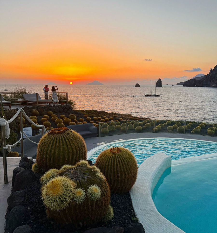 Stromboli is an island in the Tyrrhenian Sea, off the north coast of Sicily, containing Mount Stromboli, a very active volcano. It is one of the seven Aeolian Islands, a volcanic arc north of Sicily. About 500 people live permanently on the islandThe volcano has erupted many times and is constantly active with minor eruptions, often visible from many points on the island and from the surrounding sea, giving rise to the island’s nickname “Lighthouse of the Mediterranean”.